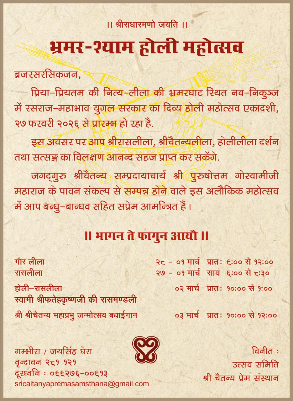 The foundation of the Sri Caitanya Prema Samsthana at Vrindavan under the inspiring president ship of Jagadguru Sri Caitanya Sampradayacarya Sri Purushottam Goswami ji Maharaj was an important event in the cultural history of Vraja, the land of lord Krishna, which has given us the message of the Universal Love. The Samsthana, a registered public trust is dedicated to spreading the philosophy of love, for the social and moral uplift and spiritual integration of humankind, through its various cultural and academic activities. In more than 50 years since it's foundation, the Samsthana has grown from an inspired idea to a continuing force in the cultural life of Vraja and the wider Indian stage.